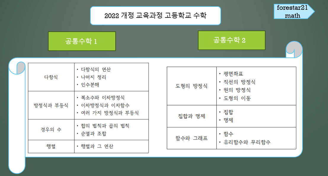 - 2015 개정 vs 2022 개정 교육과정 고등학교 수학 과목명 비교